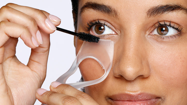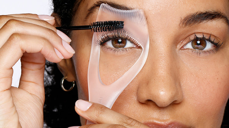 Position your eye aligned with the opening of the Lash Guard & Comb. Apply mascara to top lashes by holding the top edge of the opening against the top eye lid and lash line.